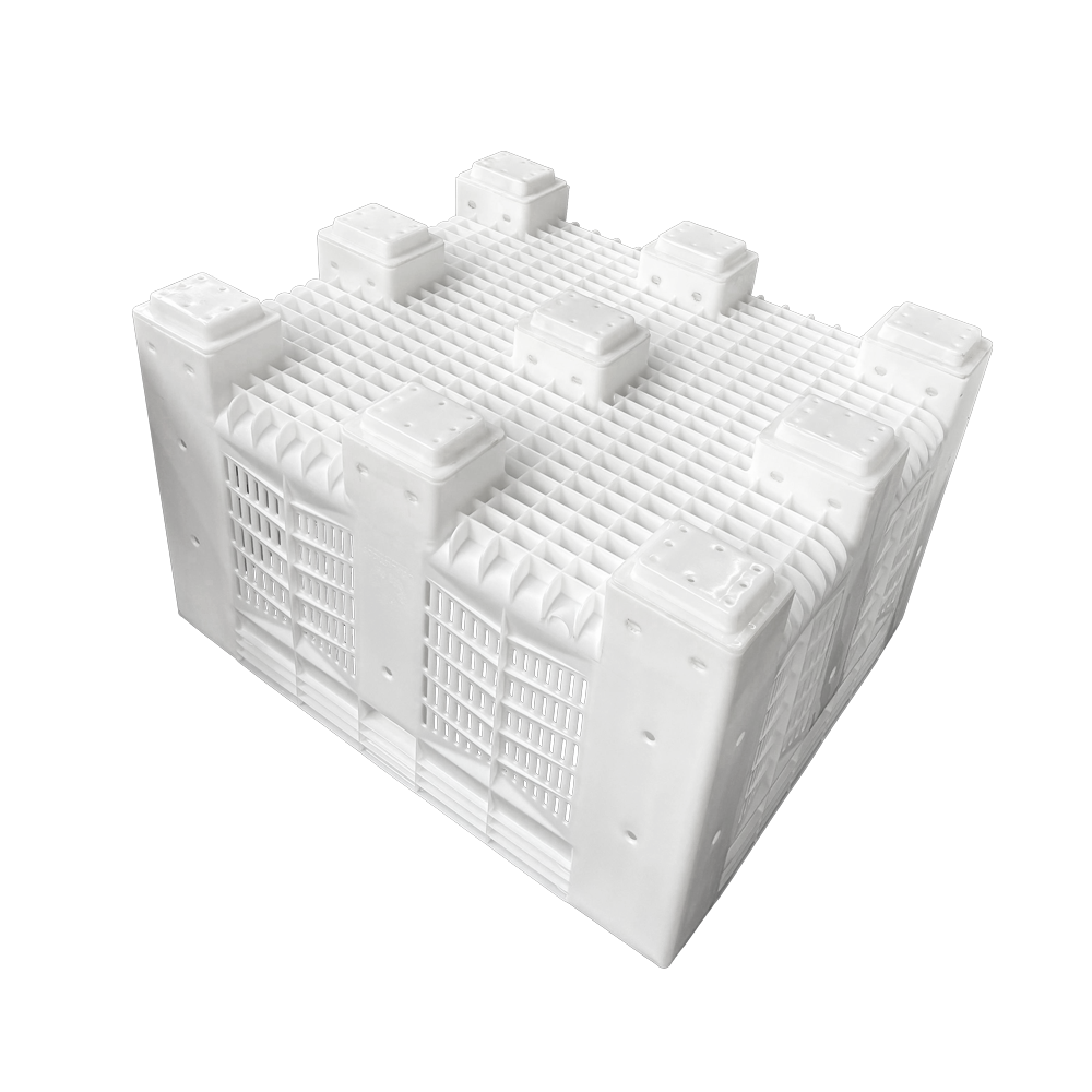 Seus 9 pés aumenta a estabilidade da caixa e garante a segurança na hora da movimentação por empilhadeiras ou paleteiras.